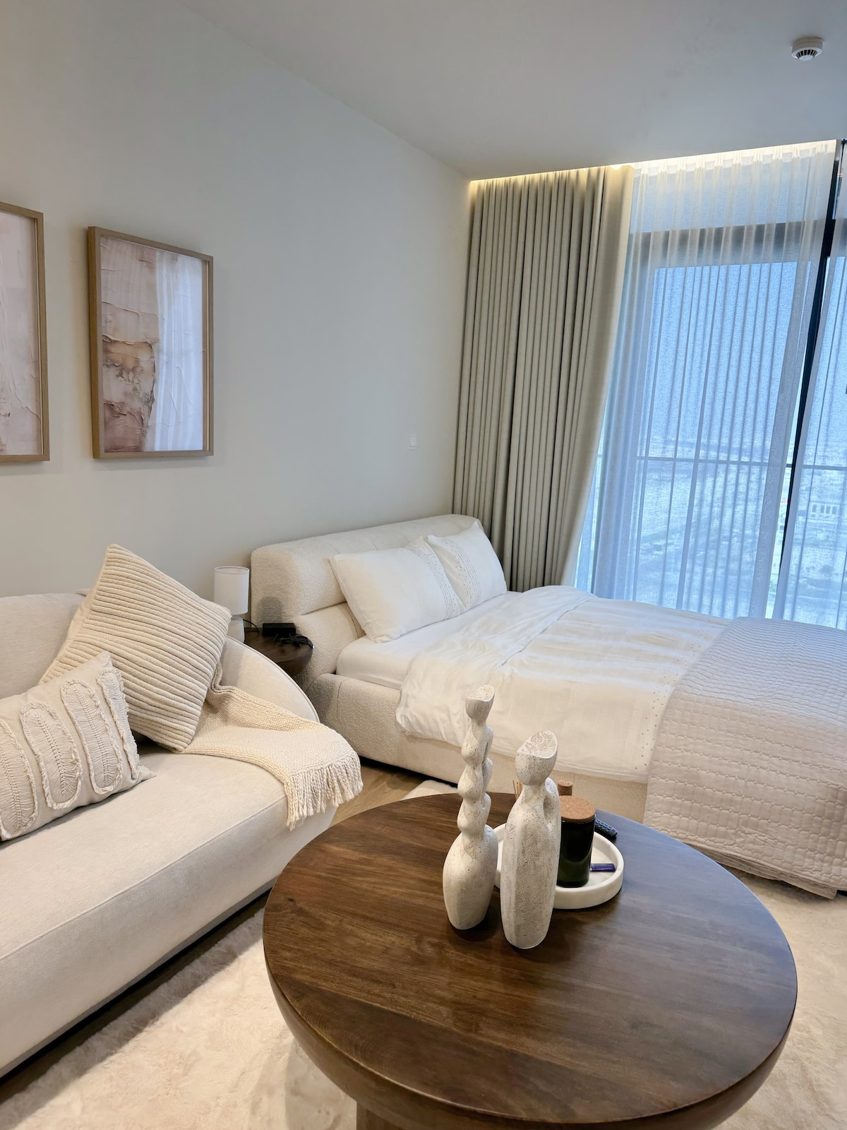 Japandi-style studio in Soho Square, Saadiyat Island. Ideal for long stays, remote work, or a peaceful city break. Fully furnished with high-speed WiFi, kitchen, pool, gym, and secure parking. Walkable to NYU Abu Dhabi, Louvre, and Soul Beach. Calm, bright, and thoughtfully designed for comfort and function. Enjoy a quiet, curated space with everything you need to feel at home — whether you’re here for a weekend or a month.