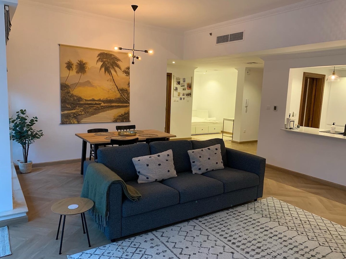 Luxurious 1BR apartment in Dubai Marina with floor-to-ceiling windows, designer furnishings and a fully equipped modern kitchen. Enjoy free WIFI, infinity heated pool, Technogym fitness centre, sauna-steam, kids’ area, and a 5-star resident lounge. Located on the Marina Walk, close to the JBR beach, top dining spots and a few steps away from the Worlds Tallest Hotel. Perfect for family, couples or travelers seeking comfort, style and convenience in the heart of Dubai. Can sleep upto 4 people.