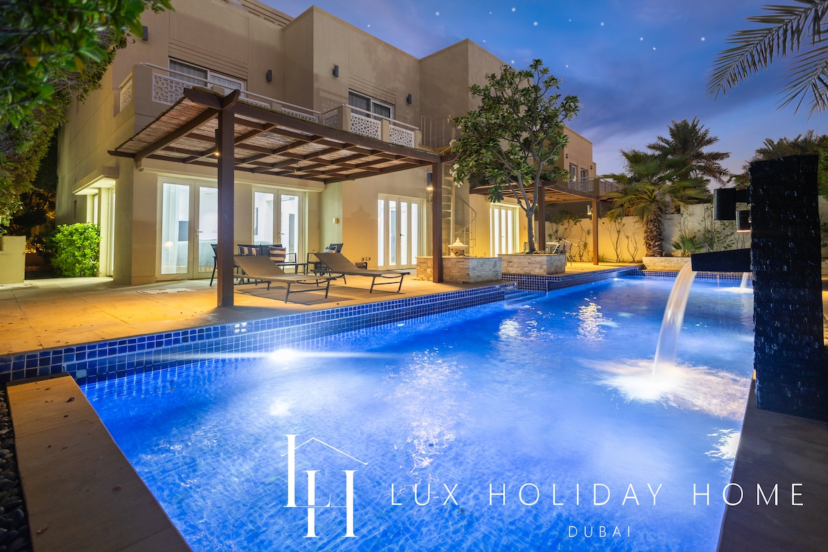 Luxurious, Independent villa, with live-in Maid/Cook. Garden Lounge/Dining/Bar/BBQ There is a community pool and park, basketball court, and playground 10 seconds walk from the villa. The lakes club (with licensed bar and restaurant called "reform", gym, supermarket, dry cleaners, ladies salon, gents barber, park, play area, dog park) is a 10 minute walk. Reform is one of the few licensed bars in Dubai that is not part of a hotel. The price quoted is for use of the whole villa exclusively.