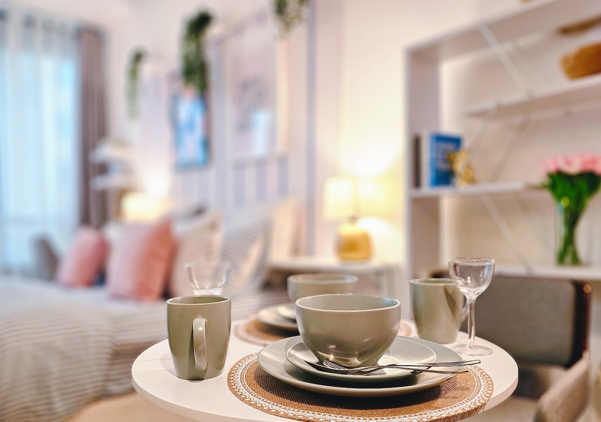 Spacious minimal studio. Have your peace of mind while the sunray makes its way through your window in the afternoon time. Then take a walk around the beautiful neighbourhood before the sunset and try the different speciality coffee places. Enjoy watching your big TV while laying on the super comfy king-size bed. You are welcome, it's your restful home!