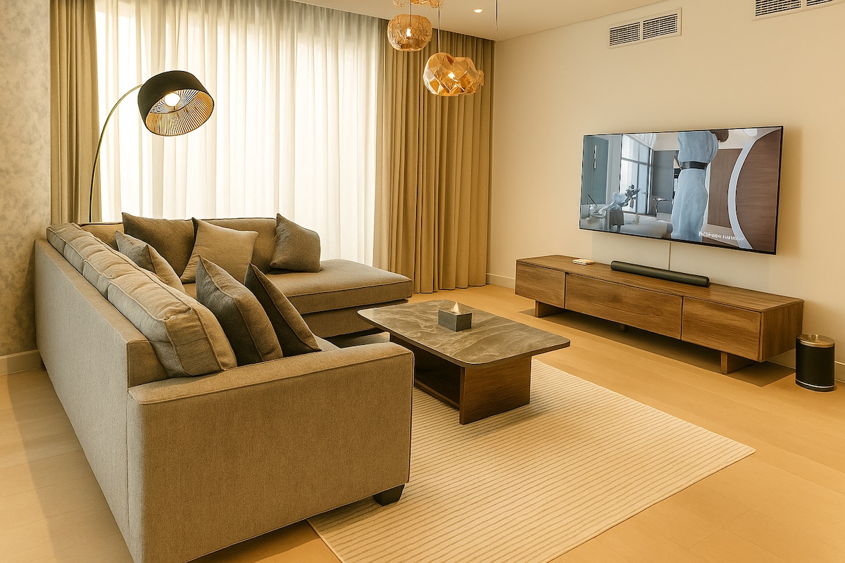 Enjoy exclusive theme park discounts while staying in a brand-new 1-bedroom apartment in the heart of Yas Island. Feels Like Home welcomes you to a modern apartment just steps from Yas Links Golf Course and the F1 Yas Marina Circuit. Relax on your private balcony and enjoy views of Yas Waterworld, all just minutes away. Ideal for theme park visits, Formula 1 events, business trips, remote work, or a relaxing getaway, this home brings together comfort, a prime location, and 5⭐ hospitality.