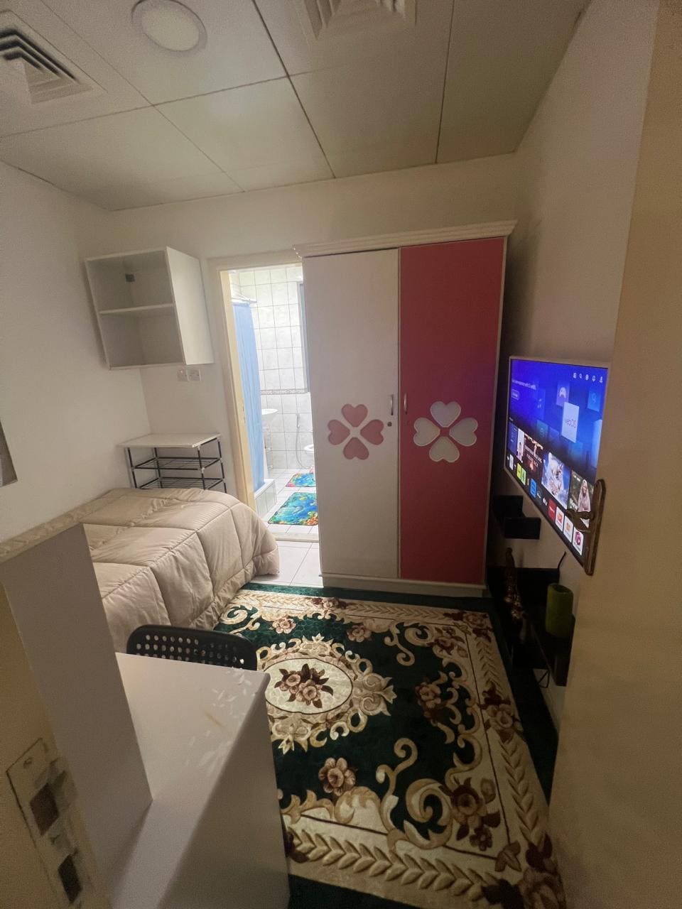 A clean and cozy single room perfect for travelers and working guests. Enjoy a comfortable workspace with table and chairs, plus access to a shared kitchen and bathroom. The flat is well-maintained, peaceful, and close to Abu Dhabi Mall and Al Reem Mall. Restaurants, groceries, and public transport are all nearby, making it a convenient and budget-friendly stay in a prime location.