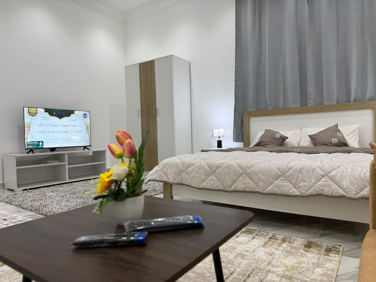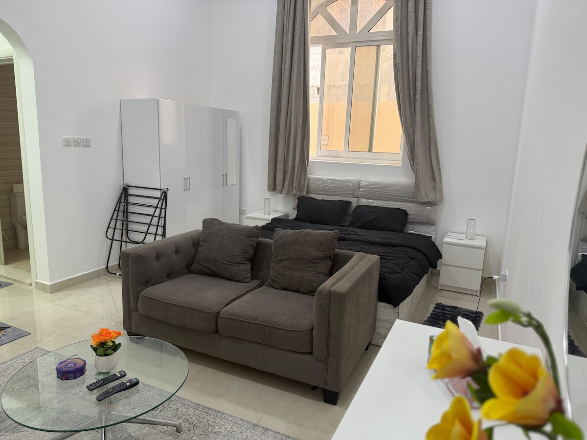 Step into our newly cozy apartment with balcony. We have an extra foldable bed, covers, blanket, and pillows under the main bed and in the cabinets. - 6 min to the airport. - 12 min to Yas Island. - 1 min to "small grocery store" Baqala Winner Food Stuff. - 3 min to Al Masar Park. - 4 min to MedClinic. - 4 min to Khalifa City Food Trucks. - 10 min to Al Raha Mall - 10 min to Khalifa City Markets. - 4 min to Joud Coffee - 20 min to Downtown Abu Dhabi. - 50 min to Dubai.