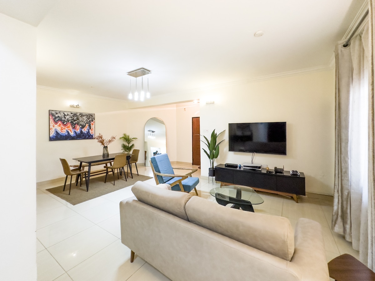 Bedroom PlayStation 5 Basketball Hop Private Balcony Fibre Optic Wi-Fi Washing Machine Furnished Living Room Fully Equipped Kitchen 2 Toilets and 1 Bathroom Proximity to Restaurants and Stores Clean and Fresh Bedding and Towels 2 Air-Conditioners on Solar&Inverter Excellent Customer Service and Support Door with Passcode and Camera at Entry 65 & 55 Smart TV (Prime, Netflix, and DSTV) Serene, Secure, and Beautiful Neighborhood 24/7 Electricity(Solar, Inverter and Generator)