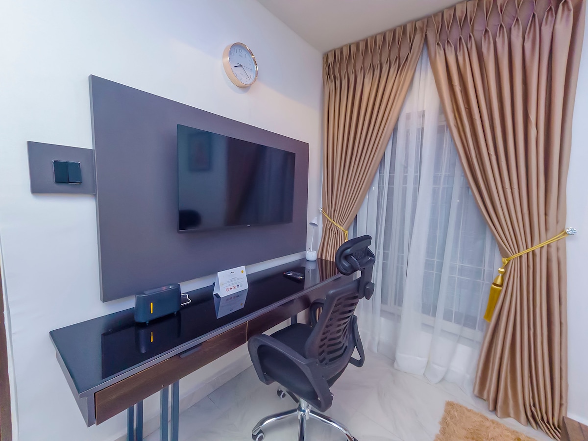 Welcome to your luxurious and comfortable studio apartment in central of Abuja. This stunning residence offers a serene escape with breathtaking views and top-notch security, ensuring your peace of mind. The apartment features elegant interiors, creating a warm and inviting ambiance. With a smart tv, Ac, inverter, fast internet connection, water heater etc. located near Jabi Lake Mall and the only lakeside in Abuja, you'll enjoy easy access to shopping, dining, and recreational activities.