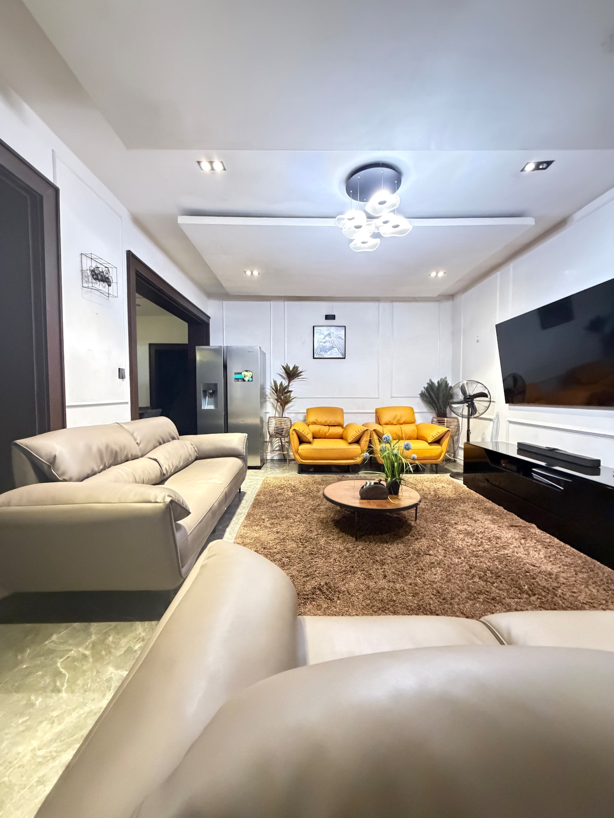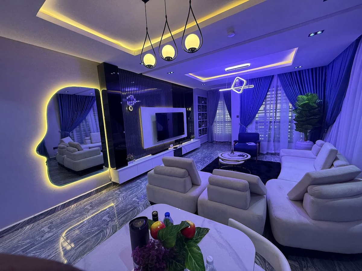 Fully serviced 3-Bedroom apartment with a fitted cinema, spacious and in a secure,calm and serene environment. 24/7 Electricity, uninterrupted internet service, Playstation 5, fully equipped kitchen, washing machine, state of art facility. Indeed! Home away from Home. Modern 3-bedroom apartment with spacious rooms, a fitted kitchen, and a private cinema perfect for comfort, entertainment, and modern living.