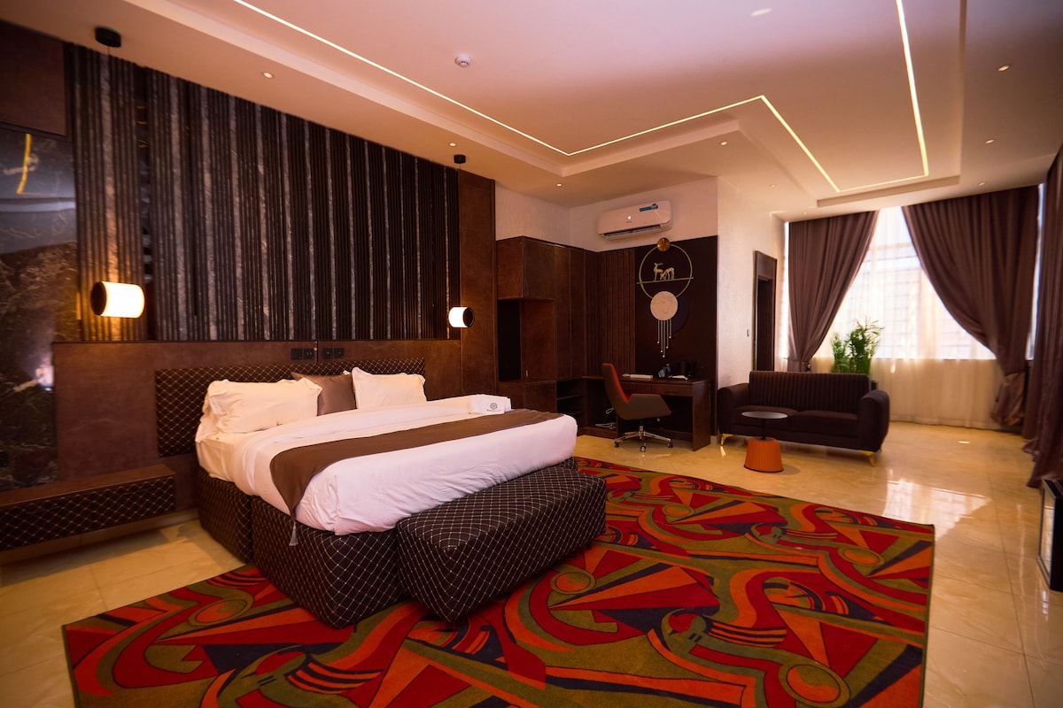🗸Complimentary breakfast, welcome drink and premium bottled water 🗸Plush bed with crisp linens 🗸In-room safe 🗸Convenient bedside charging & nightstands 🗸High-speed Wi-Fi 🗸Enhanced bathroom amenities {Bathrobe and luxury slippers} 🗸Access to indoor hotel, bar and shared lounge 🗸Minutes from the city centre, major freeways, and the airport 🗸Close to Abuja National Mosque, National Christian Centre, Yar’Adua Centre, art venues, and Jabi Lake Mall 🗸Children under 13 stay free. Book Now!