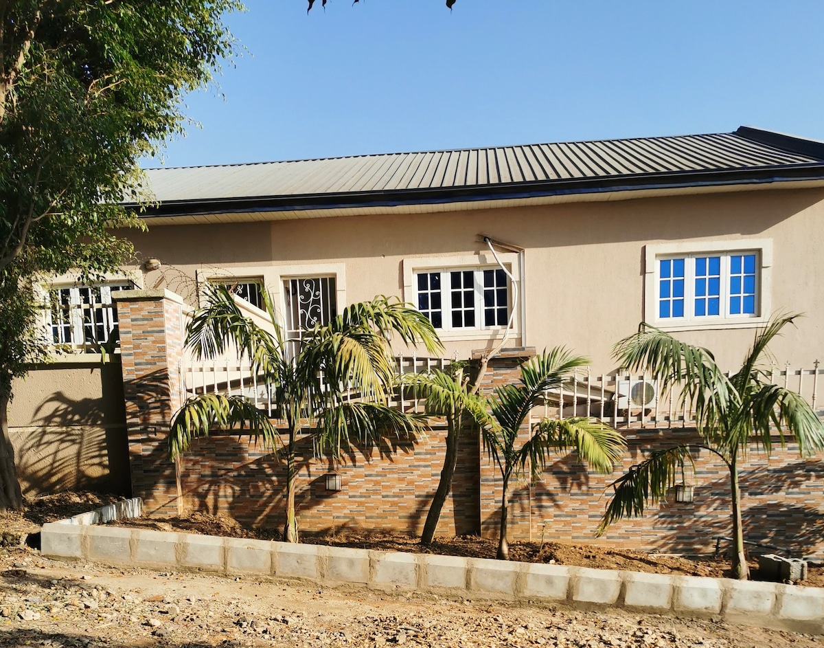 This is a stylish and unique available 2-bedroom house on its own with PS5, Snooker & 24/7 Power Supply (AEDC, Inverter System and Solar Power Installation) Easy Access to Town, Security and above all No Traffic within its locality. This house is super ideal for Staycation, Short Letting and home away from home experience. Our guest can actually confirm that, the house is more beautiful in real time than the pics. A great and comfortable stay await you. Go ahead and book now.