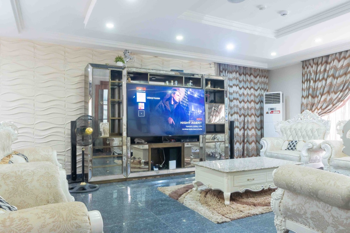 Enjoy a stylish experience at this centrally-located place. Home away from home, with state of the art decor and amenities to make your stay a memorable one. Facilities include: -PlayStation 5 - WiFi - proximity to major places . 2 minutes drive to maitama and 5 minutes drive to wuse 2. - 24hrs electricity with inverter and generator - 2 balconies -2 sitting rooms - Smart TVs in all rooms and parlors.