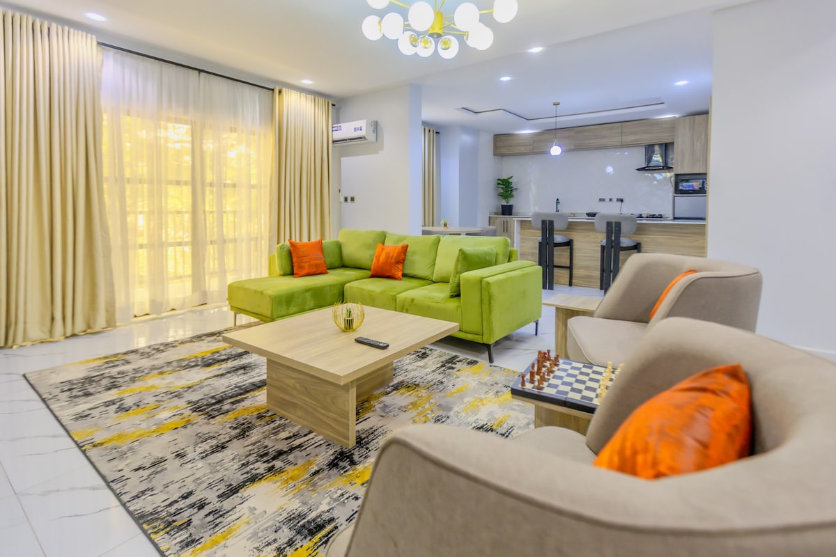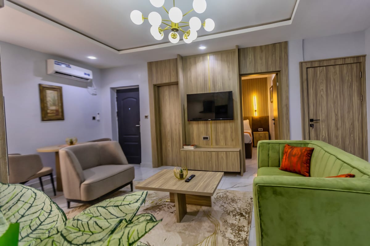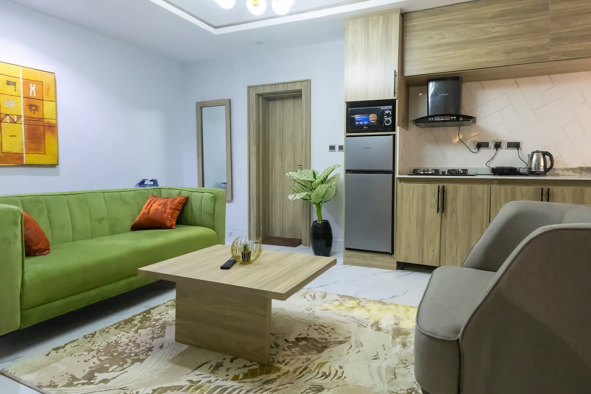Welcome to your cozy 1-bedroom, 1.5-bath rental in Abuja. Perfect for business or leisure, it offers a relaxing reading space, child-friendly features, and modern comfort. Enjoy nearby restaurants, shopping malls, and vibrant city life. Jabi Lake, with its beach-like vibe and outdoor fun, is just a short drive away. A stylish retreat in the heart of the Federal Capital Territory.
