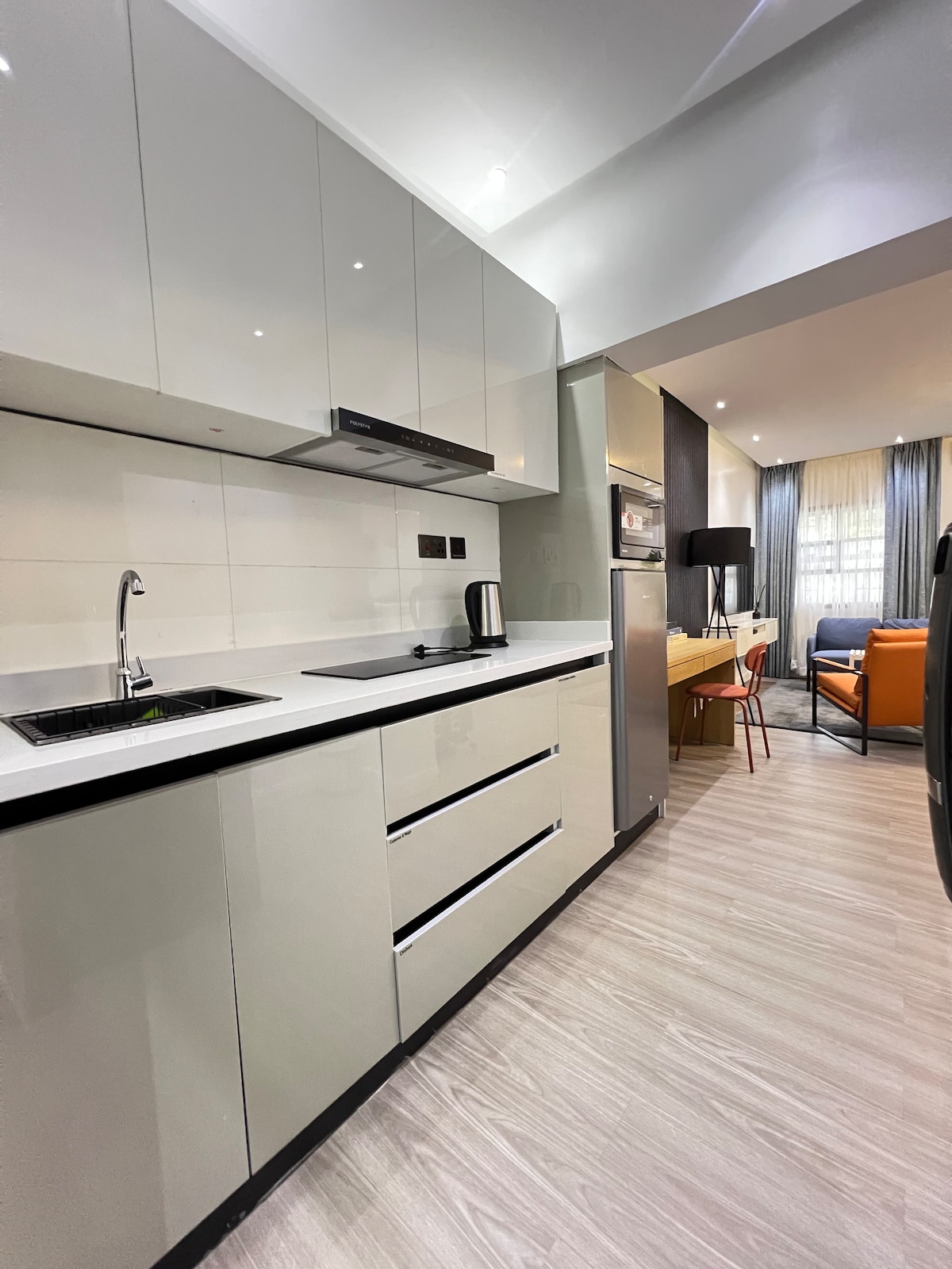 SECURITY COMFORT FUNCTIONALITY ACCESSIBILITY Are the attributes that define this beautiful studio space. Fully fitted kitchen, 24/7 power, 24/7 internet for TV streaming, Beautiful and well secured neighborhood and street, well maintained pool, spacious compound for guest parking, excellent privacy and the ease of getting around town and city from this location. Above all, you get 5 Star service for the price of 3 Star.