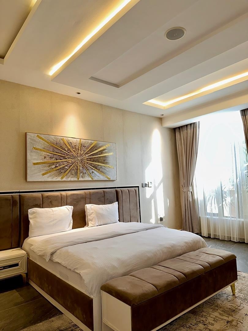 Luxury 1-Bedroom Apartment with Elevator Access Experience refined comfort in our beautifully furnished one-bedroom apartment within a secure, upscale complex. Each unit features a private bedroom, elegant living area, fully equipped kitchen, modern bathroom, and a stylish visitors’ toilet. The building offers elevator access with discreet shared areas, making it ideal for business and leisure guests seeking quality and privacy.
