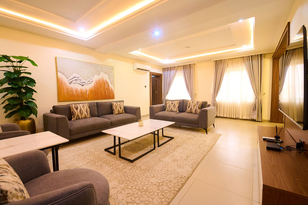 Exquisitely furnished 2bedroom Apartment FEATURES: ✅Table tennis ✅Snooker ✅Secuirity ✅Daily cleaning ✅ 24 hours light/clean water ✅ Clean water ✅24hrs internet connection ✅cinematic Smart televisions ✅En-suite rooms ✅ Fully equipped kitchen . ✅Relaxation area. ✅Cable ✅smart generator ✅cookery/ cutlery ✅fridgeFreezer 📍 wuse 2 -Abuja PS5,VR GAMES, Shopping /Private chef (on request)