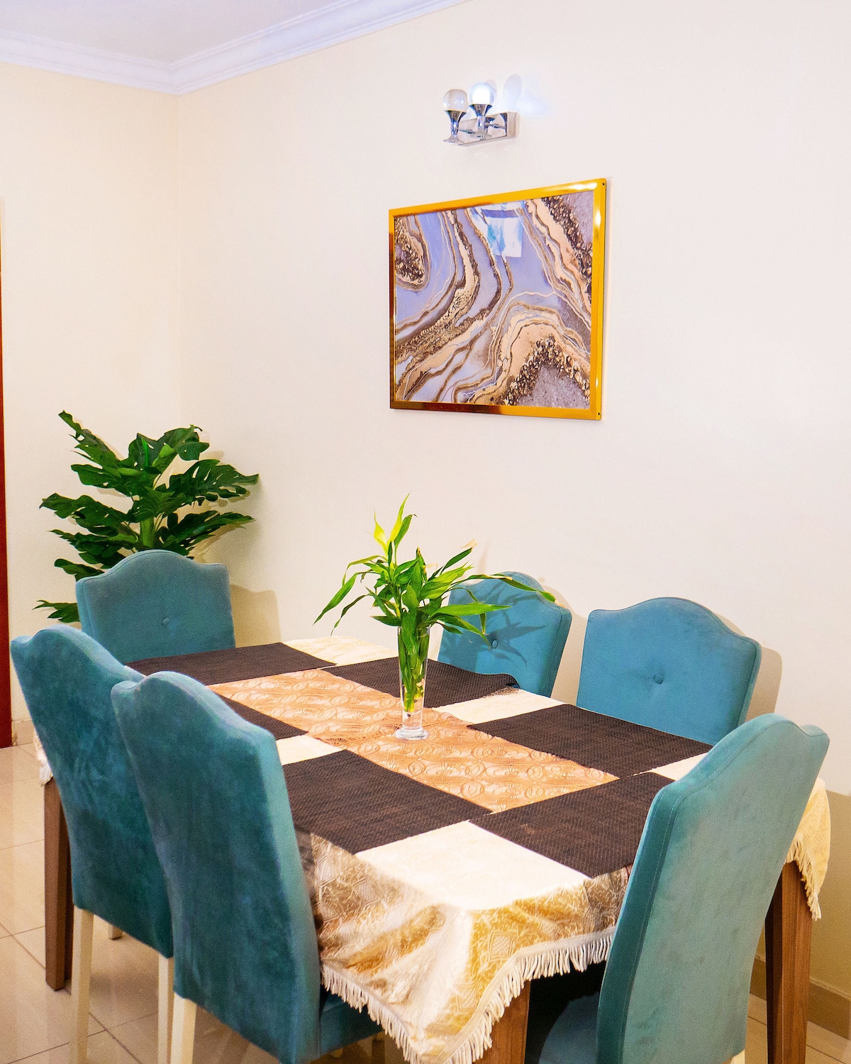 Airport Pick up/Drop off, daily driver services @ a fee. Royalty Luxury Serviced Apartment was concieved & designed as a home for Royals. It’s quiet, unique, stylish & homely with exquisite furnishing to give a feel of a comfy home. Located in a serene secured gated estate with convenient access to all part of Abj. 247 electricity with solar/Inverter systems, Fiber Optic wifi, fan, fully fitted modern kitchen, armed security. Pool table, relaxation swing, swimming pool & washing machine