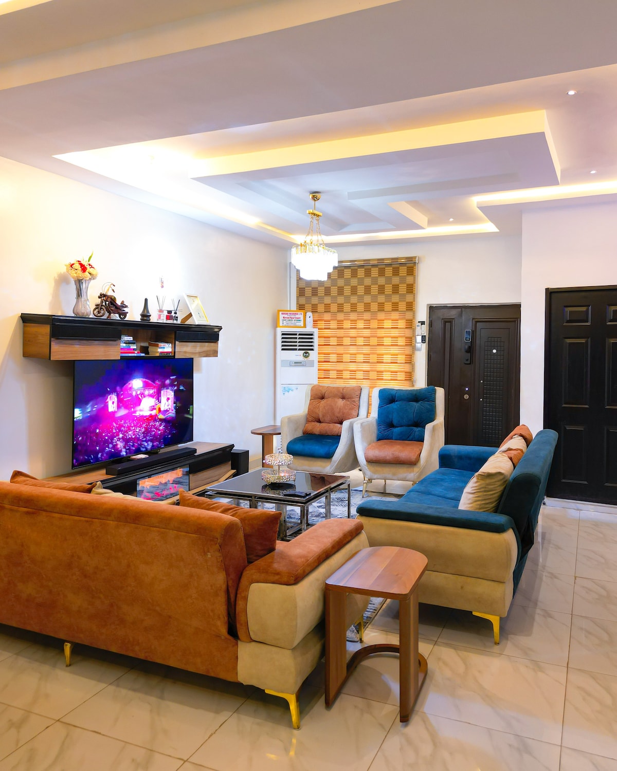 Enjoy this spacious 3 bedrooms, 3 and half bath duplex with reinforced security doors, located on the ground and 1st floor in a mini estate in Mabushi. 3 minutes drive to Wuse 2, 7 minutes to Hilton in Maitama. Electricity is powered with 100kva industrial generator, a dedicated inverter to guarantee there is always power to light up the unit. Cleaners come in every other day, we disinfect after every stay, we only use white sheets, there are multiple smart TV’s in the apartment with 5G wifi