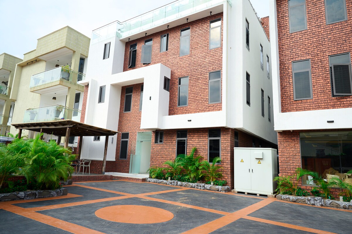 Welcome to your upscale urban getaway in the city of Accra! With a stunning view of the Aburi mountains, only a few minutes drive away or 15 minutes walk. Under 12 miles from the airport, straight on the M4 with no turns. Our two-bedroom apartment offers joy & comfort with 24/7 security, 24/7 electricity & water, with exclusive amenities, such as a pool, rooftop terrace, modern gym, full kitchen, wifi, barbecue, and more that will make your stay truly unforgettable.