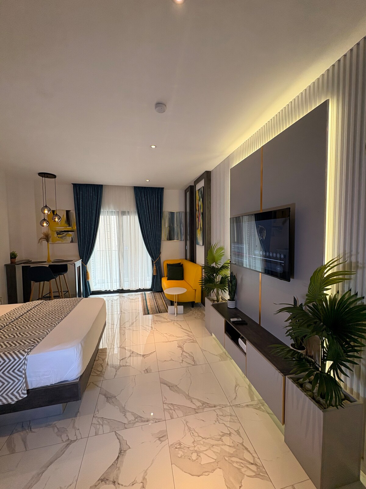 Your extraordinary Accra experience begins here. Book now and see why guests say ‘home away from home only gets better.’ Access to rooftop pool and gym. This stylish unit in Airport Residential offers hotel-level comfort. Enjoy a queen bed, vibrant yellow sofa, smart TV, fast Wi-Fi, cool AC, kitchenette, and a calm balcony. Walk safely to Airport City, restaurants, malls, cafés and Roman Ridge. 5-10 mins drive to airport. Perfect for business travelers, couples, solo guests and weekend escapes