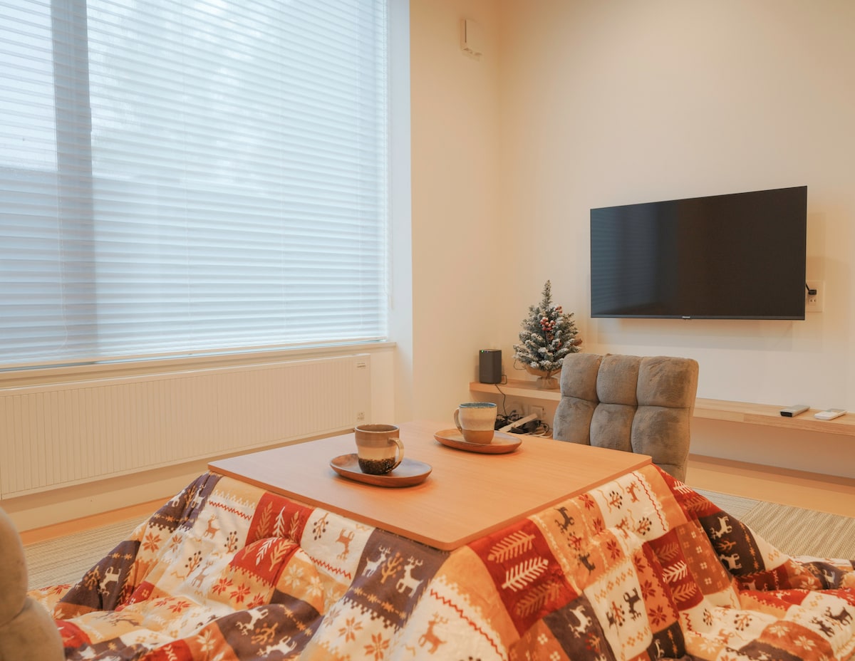 Toyosato A is a self-contained duplex. It features three bedrooms and two fully equipped shower rooms and toilets, offering optimal comfort and tranquility. Whether you want to relax after a day on the slopes or enjoy a quiet evening with your family,this chalet is ideal. 15-minute drive from Hirafu Gondola and the Hilton Gondola in Niseko Village, and 30mn of Rusutsu ski station, this place offers easy access to world-renowned ski slopes while ensuring a peaceful and rejuvenating environment.