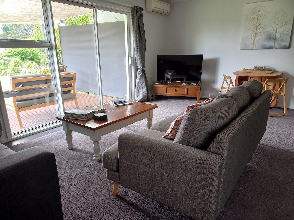 Kick back and relax in this calm, stylish space. The view across the lake to Acacia Bay will keep you mesmerized. Entrance through a ranch slider from your own north facing deck. Private access is available to the Botanical Gardens where mature native trees provide a lush canopy covering breathtaking walks before you settle in with a glass of wine on your own deck watching the lake and listening to all the bird life. Included is separate bedroom with a queen bed, a modern tiled bathroom, smarttv