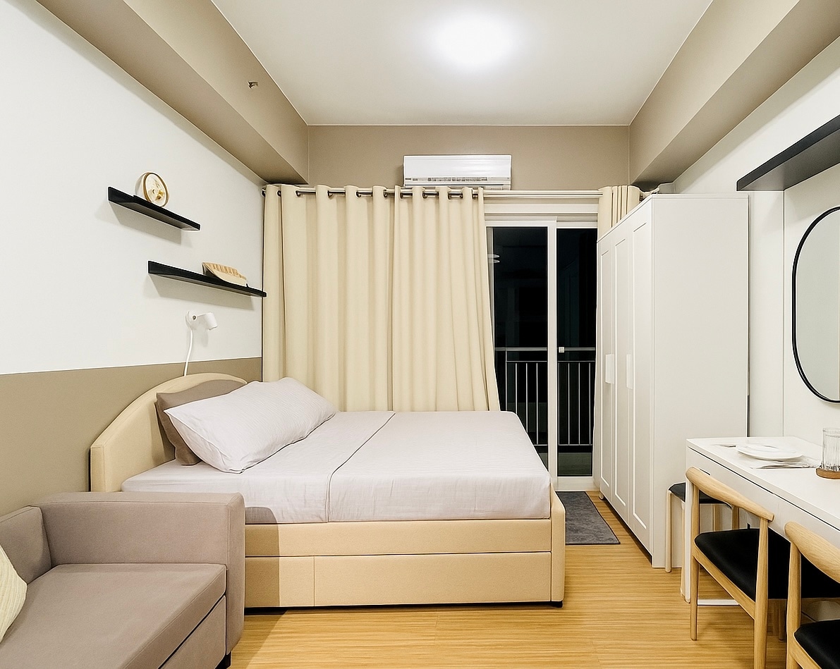 Cozy corner studio unit just 5 min away from NAIA Terminal 3 and Runway Manila. Enjoy a bright space with an airport view, comfy bed, smart TV with free Netflix, and fast WiFi. Guests also have free access to the pool, gym, and playground, making it perfect for layovers, quick getaways, or city stays.