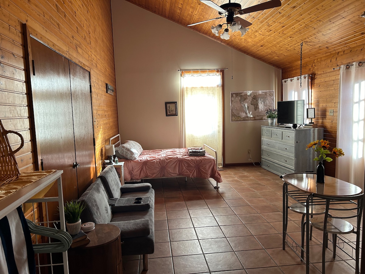 Enjoy an incredible weekend getaway on a beautiful piece of farm property minutes from downtown St. Francisville. This cottage with a treehouse view has a king size bed, full bath, kitchenette and beautiful sitting area. The front porch sitting area has a swing and two rocking chairs. Enjoy the incredible views with coffee and reading in the mornings or wine and conversation in the evenings.