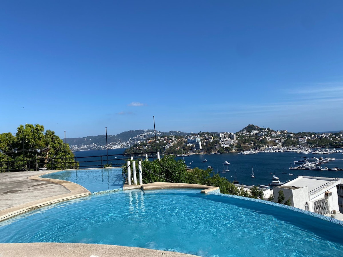 Pent House PET Friendly único en Acapulco con una vista a 360 grados. Alberca panorámica que permite gozar del show de los clavadistas de la Quebrada. Area de sala y comedor totalmente abierta hacia el exterior con terraza amplia. Cocina equipada y tres recamaras cómodas cada una con su respectivo baño. La decoración del PH es de estilo mediterráneo. El espacio goza de la ventilación natural de la brisa marina lo cual da una sensación de bien estar.