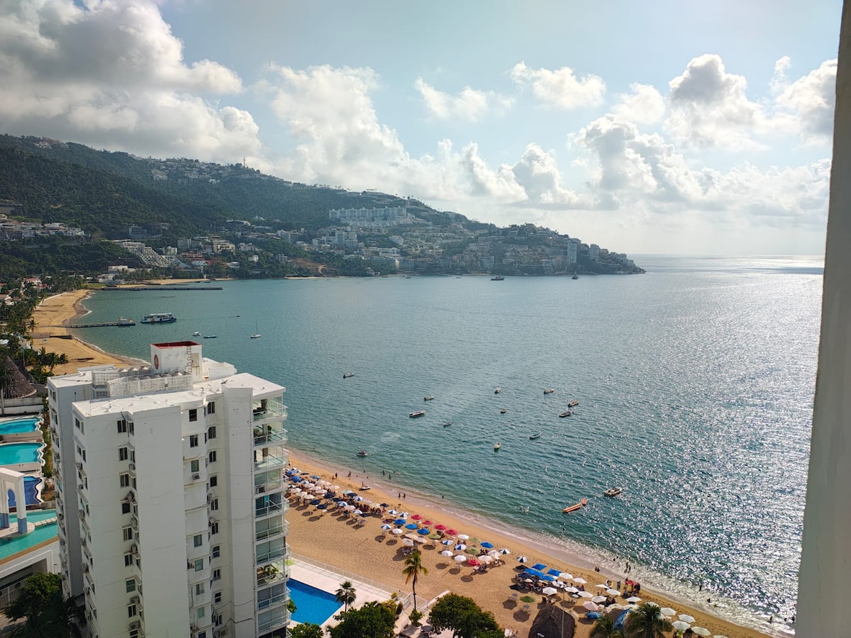 Magnifica vista panorámica de la bahía de Acapulco, localizado en el piso 24 de las Torres Gemelas Acapulco, con acceso a playa privada, area de albercas, vigilancia las 24 horas. Espacio cómodamente amueblado para 4 personas, cocineta integral, muebles de interior y exterior, TV plana , refrigerador, horno de microondas, tostador de pan, cafetera de capsulas, secadora de pelo, plancha, toallas de alberca y toallas de baño incluidas.