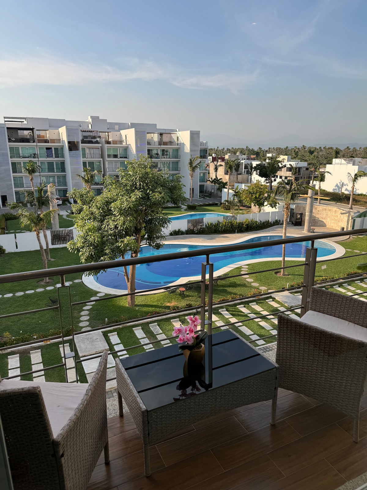 Lujoso, moderno y amplio departamento al pie del mar con vista espectacular de la bahía. El condominio tiene acceso directo a la playa, una zona de alberca con jardin, wifi gratuito en áreas comunes, sundeck y playa privada ! Ambiente relajado y familiar, seguridad las 24h y un personal muy amable y eficiente. Excelente ubicación, a un paso del club de golf, muchas opciones de restaurantes y supermercado cercanos. No se aceptan mascotas.
