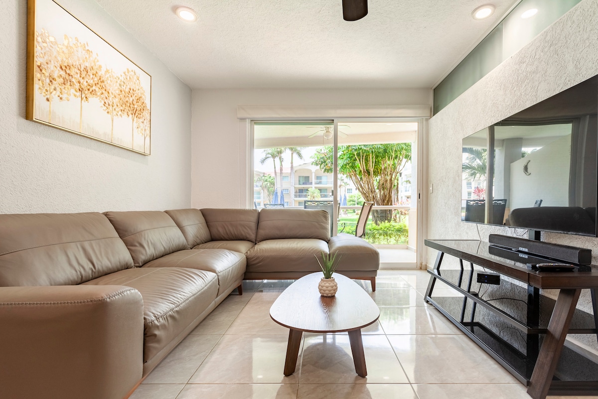 Ground floor apartment with all services and intact interiors after OTIS/JOHN. Huge pool with an amazing garden, private Jacuzzi, 24/7 security, 300 MB WIFI speed, and an equipped kitchen. Your private parking space is a few steps from the door. Located on the main Ave in the Diamante area, 7 min from the Aero and 1.2 km from the beach. 2 BRs and a living room with mini-splits, 2 bathrooms, Bluetooth speakers in the ceiling, a folding desk in the living room with views to the garden.