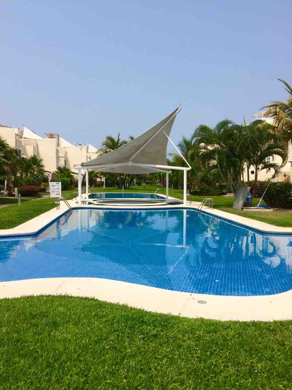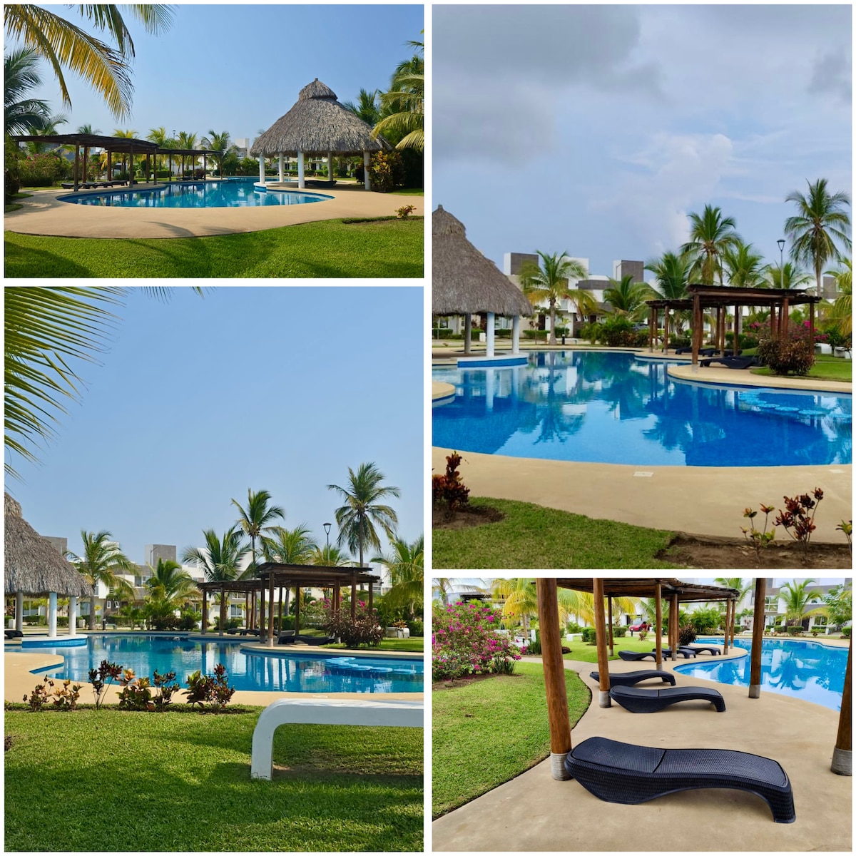 Relájate en este espacio tan tranquilo y elegante llegando a un espacio privado para tu familia y seguro con seguridad las 24 horas cuenta con tres recamaras todas con aire acondicionado, sala con aire acondicionado, comedor, cocineta, patio de servicio, 1 baño y medio y en otra ubicación se tiene acceso a un Club de Playa privado para 6 personas que se encuentra a 8 minutos del condominio con acceso a la playa, la alberca 2 son las albercas que se encuentran en el Club de Playa