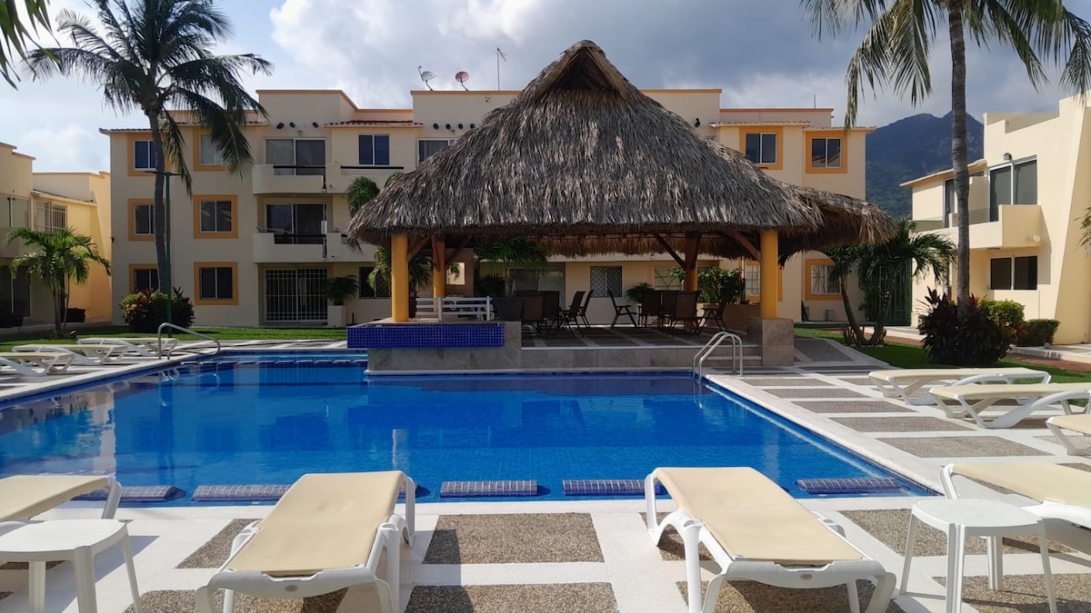 ¡Bienvenido a tu refugio en el corazón de Acapulco! 🌴🌊 Disfruta de una estancia única en este encantador departamento situado en la parte alta de Acapulco, con vistas inigualables a la emblemática Bahía. Este espacio es ideal para parejas, familias o amigos que buscan relajarse y disfrutar de todo lo que este destino tiene para ofrecer. Amenidades: .2 albercas .1 asoleadero húmedo .1 chapoteadero para menores .skybar .lavanderia con costo adicional. .estacionamiento gratuito