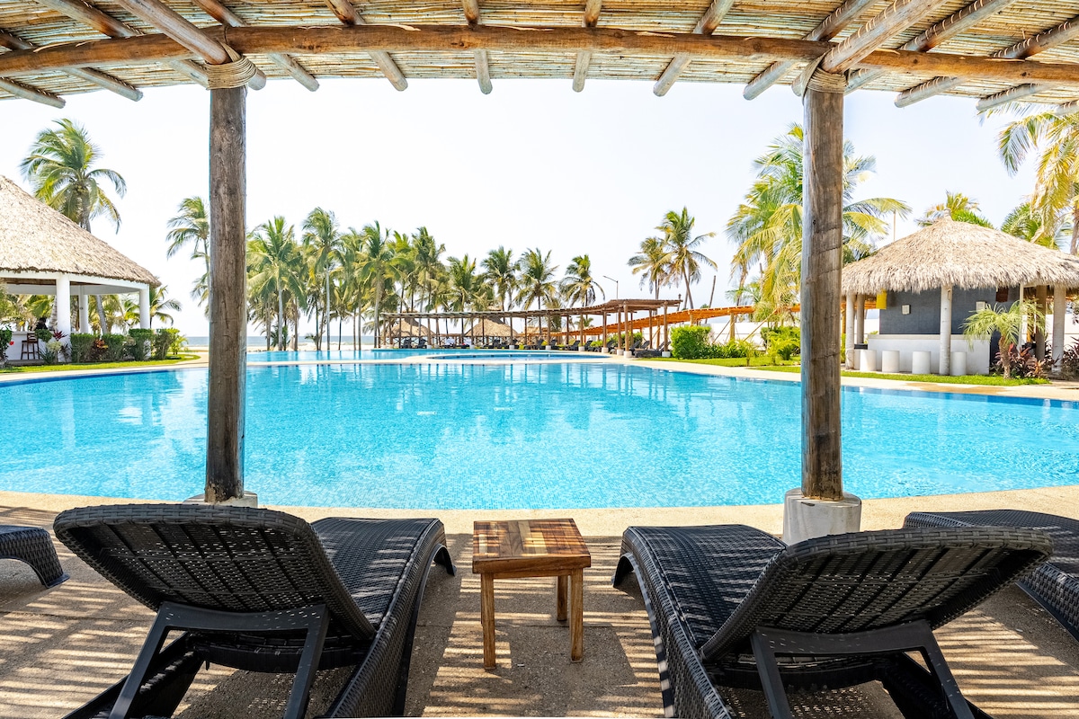 Departamento frente al mar con todas las comodidades, ubicado en una de las mejores zonas de Playa Bonfil, a tan solo 5 minutos del Centro Comercial La Isla y Mundo Imperial. Con una increíble vista y acceso a la playa a unos cuantos pasos. Contamos con todos los servicios básicos, internet, clima, elevador, cortinas antihuracán, estacionamiento sujeto a disponibilidad, roof garden con asadores y alberca panorámica, donde podrás disfrutar de unas maravillosas puestas de sol