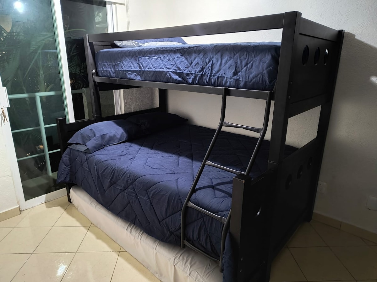 Departamento de 4 habitaciones , para hasta 12 personas, en la Isla Acapulco, con acceso a la alberca y la playa caminando. Completamente equipado con todo lo que necesitas para descansar y pasar unos días en la playa. El residencial "La Isla Residences" cuenta con varias albercas, áreas para niños, una alberca con toboganes, snack bar en las albercas y restaurante en la alberca principal. Cuenta con cancha de tenis, gimnasio, SPA, sala de cine, ludoteca y cafetería dentro de la casa club.