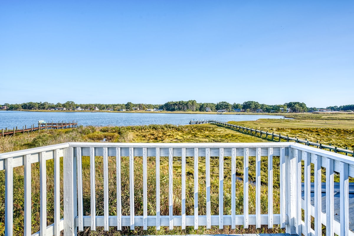 Wake up to shimmering Chincoteague Bay views in this modern waterfront escape on Virginia’s Eastern Shore. Spend mornings on the water, afternoons by the fire pit, and evenings under glowing sunsets. Kayaks, bikes, pools, golf, pickleball, and trails are moments away, with beaches a short drive. Bring the dog, unplug, and settle in. Your coastal reset starts here.