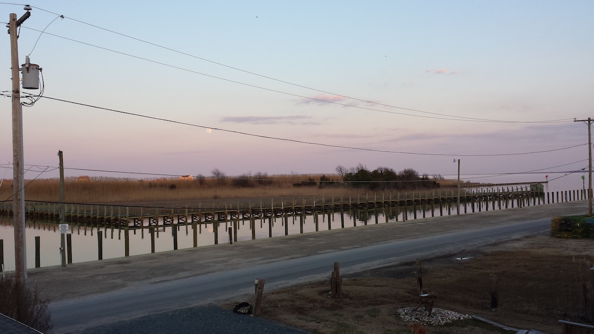 Wide expansive waterfront view of Chincoteague bay-awesome sunsets! 5 waterview rooms. The narrow bit of land across 3446 Main St. belongs to our property w/chairs + a firepit + water access to launch kayaks (2) provided! An open plan-coastal rustic design. Front sitting room w/sofa + high-top table. A large upscale kitchen, two sofas in living room, 2 bdrms, & sleeping loft + a tiny office with a twin murphy bed. Large deck-table, sofa + grill. Family home, not ideal for more than 3 adults.