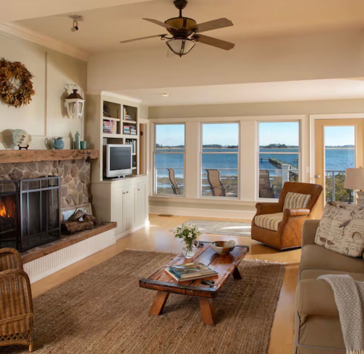 Wake up to sunrises over the creek as you sip your morning coffee and soak in the stillness that surrounds you. 🌿 Outdoor Features: Private dock with multiple boat slips – ideal for crabbing, fishing or just taking in the view Covered porch with a fireplace, tv and gas grill Outdoor fire pit for s’mores in summer or oyster roasts in winter Private beach area for lounging, shell collecting 🎯 Yard Games for All Ages: Hammock for afternoon naps beneath the trees