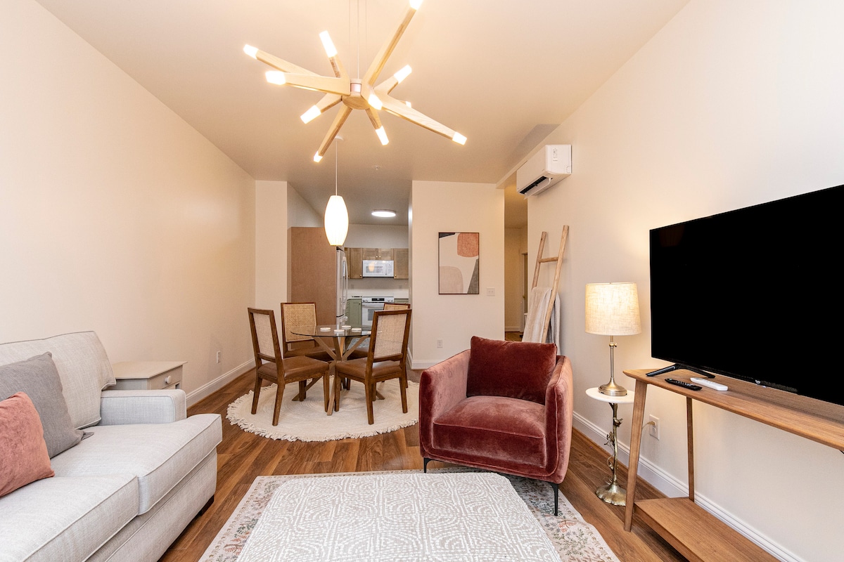 Regenerate at the Serenity House! Second floor apartment; three spacious queen bedrooms with SmartTV, equipped kitchenette, work space with WiFi, mudroom and laundry on the first floor. Large yard with big mature shade trees nestled in a quiet neighborhood. One corgi and two cats live on the property. The pets are not allowed into the guest rooms. Continental breakfast served in the shared space. Private entrance, off street parking available.