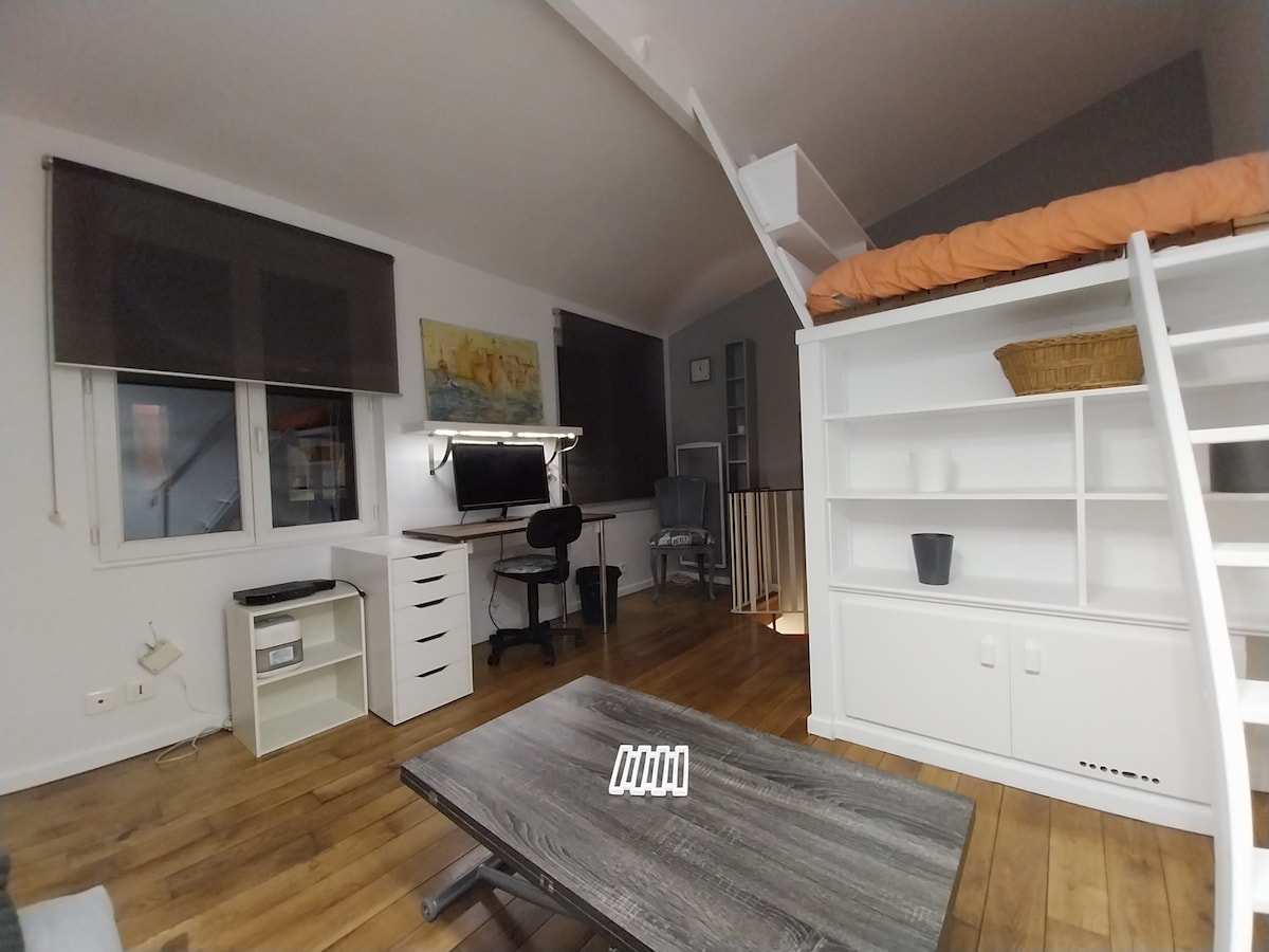 Above the rooftops of Paris, on Montmartre hill, for romantics visiting the city. Built in 1885, a 57m² (614 sf) duplex, on the 5th floor, no elevator--but the FAIRYTALE VIEW makes up for it! Unique, sunny, original parisian apartment. Tastefully and comfortably furnished. On a quiet side street, you'll sleep very well. ★Enjoy the real live of a Parisian from Montmartre! ★Sacré-Coeur Basilica - 8 min' away, ★Amelie Poulain’s Café, ★Moulin Rouge - 5 min'.