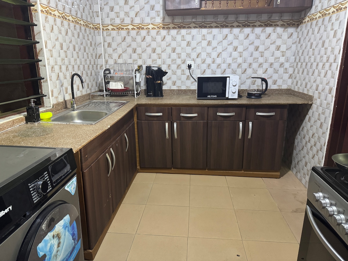 This apartment is located within Mariville Homes Estate, a gated residential community off Spintex Road, near Manet Junction. Conveniently situated just a 15-minute drive from the airport, the property offers a secure and serene environment. The estate is gated and monitored 24/7 by private security, ensuring controlled access. The apartment features two bedrooms and can comfortably accommodate up to four guests. Both bedrooms are en suite and feature queen-size beds.