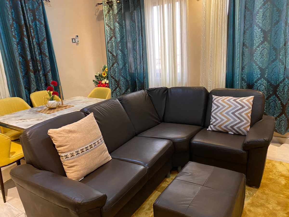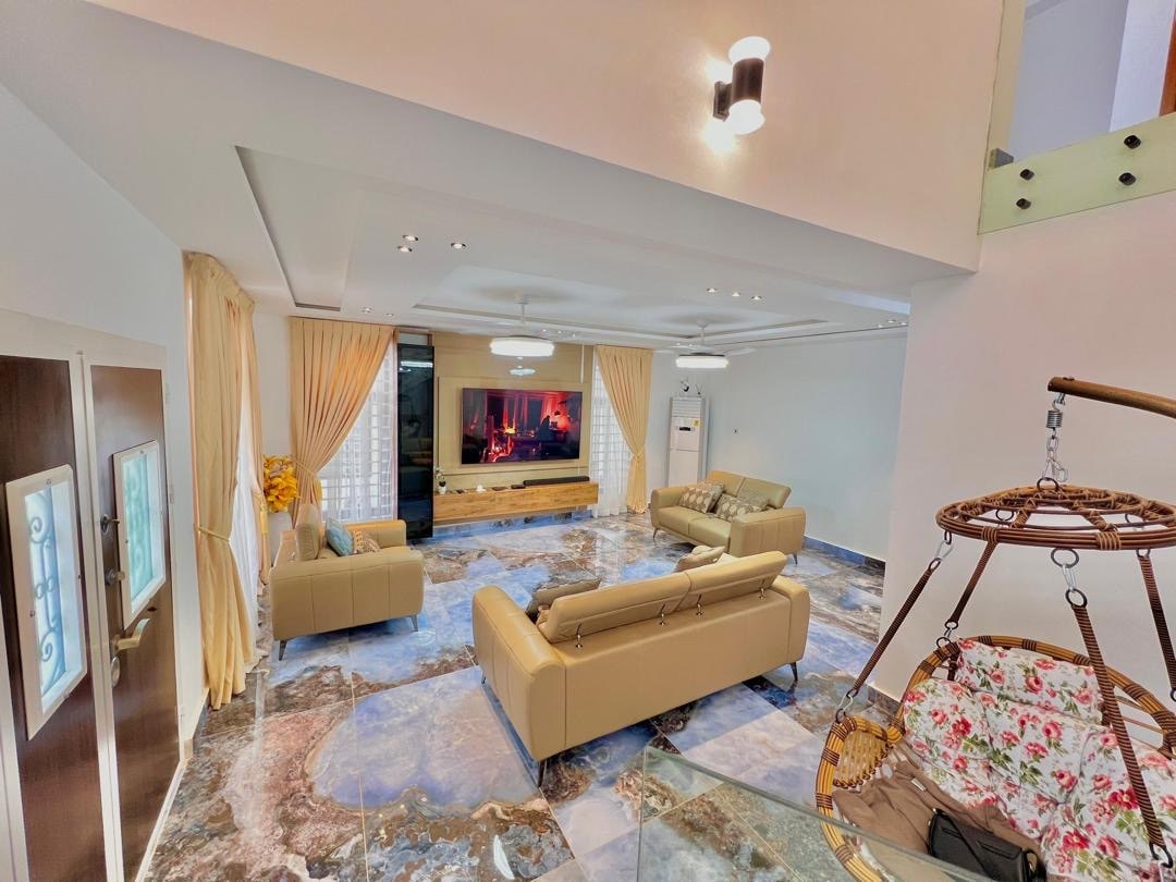 Our modern 2 Bedroom - 2.5 Bathroom Apartment offers the perfect blend of comfort, convenience, and community. The apartment if full suit with everything you need. -24/7 security for your peace of mind -Backup Generator to ensure uninterrupted power supply -Reliable water supply and internet connectivity - Club House -Pool/Gym/Garden/Water Fountain -Air conditioning for a comfortable stay - 15 minutes from the airport -5 minutes from hospital, grocery store, etc -onsite office management