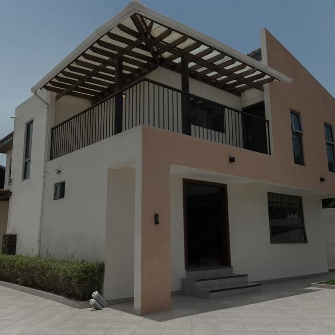 Welcome to our luxurious 4-bedroom property in East Legon. Situated on a serene compound with a swimming pool, each building mirrors the other in design and amenities. Only 8 minutes to the University of Ghana and 15 minutes to the airport. The house features one ground-floor bedroom and three upstairs, all en-suite. Two primary bedrooms boast king-size beds and spacious rooms. Experience privacy, security, and tranquillity close to city amenities. Your perfect home away from home awaits….