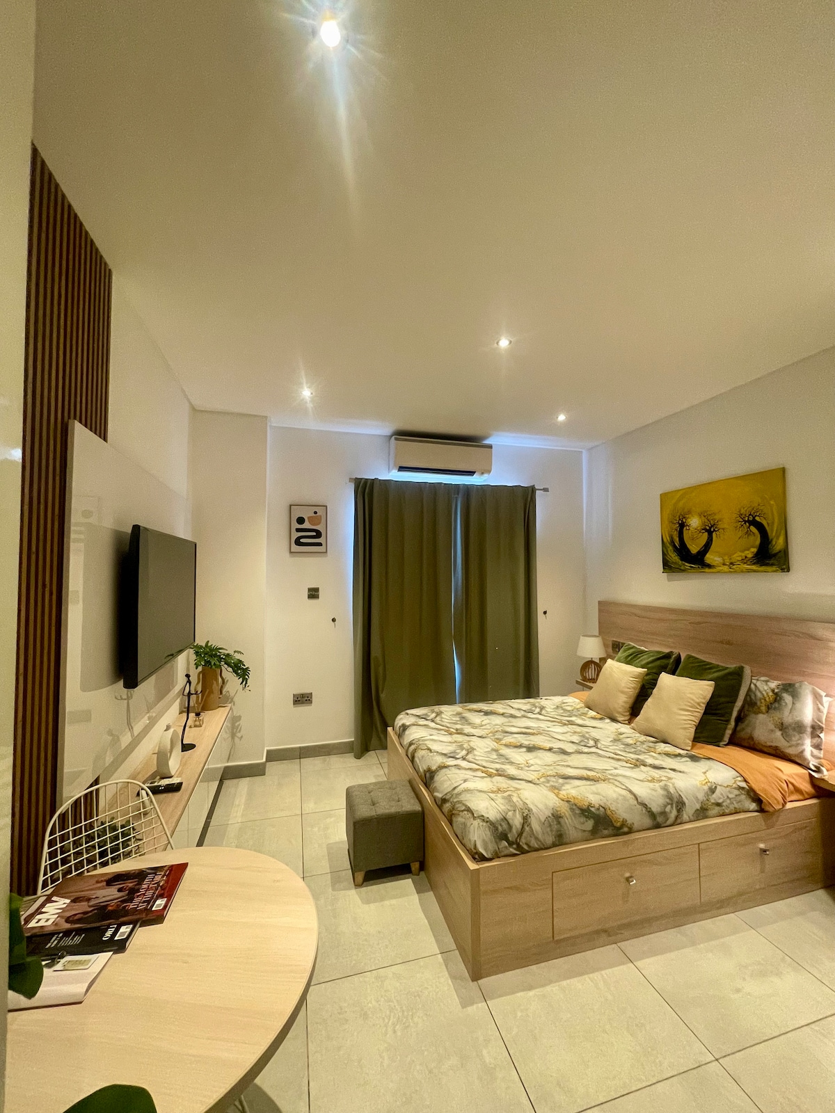 Experience Comfort in our modern studio inside Signature Apartments, one of Accra’s most sought-after spots. Just 7 minutes from the airport, and close to malls, restaurants, and key attractions, it’s a great location for exploring, relaxing, or getting around with ease. Enjoy access to top-tier amenities including a rooftop pool, gym, spa, cinema, and 24/7 security. Perfect for a short getaway, work trip, or city stay, this space offers style and comfort in the heart of Accra.
