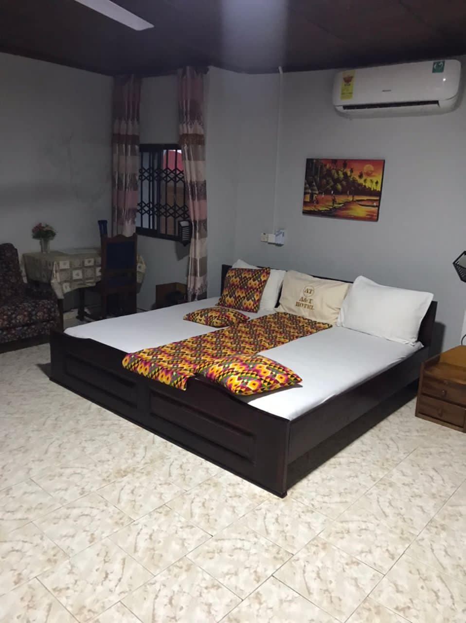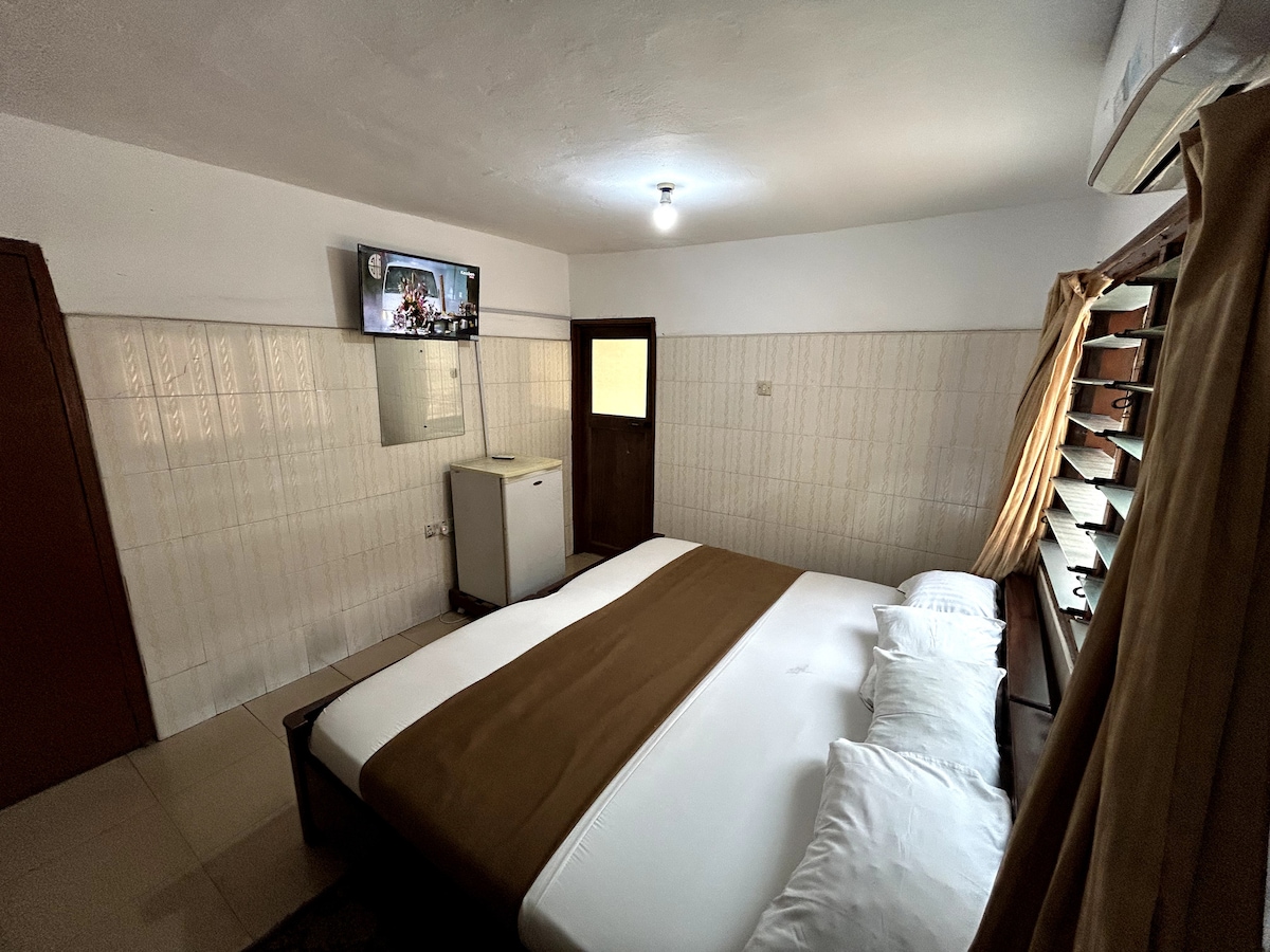 Feel at home in Accra with comfortable rooms, warm hospitality, and great local food. We’re right in the centre of the city, close to markets, restaurants, and major attractions. We provide a simple complimentary breakfast each morning. Other cooked items can be prepared for a small extra fee. The room in the image shows our superior double room. We also offer single and 4 bed rooms. Please contact us to discuss more details about the rooms we offer.