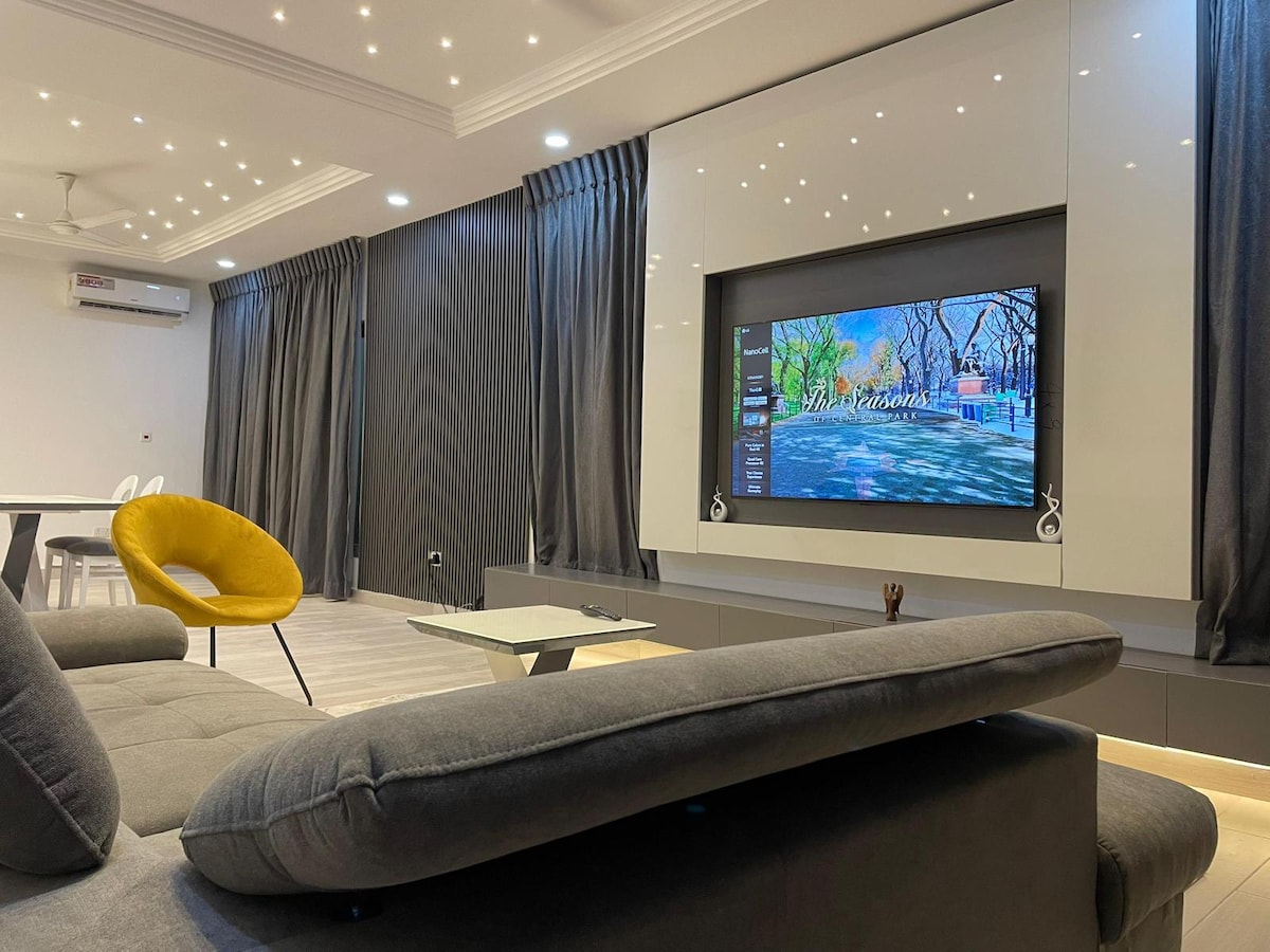 Have fun with the whole family at this stylish place. It is spacious, peaceful and fully furnished. Big enough for the whole family, situated right by the main road and 3 minutes away from the lakeside marina park which is a recreational site. It is 25 minutes drive away from the Kotoka International Airport and Accra Mall.