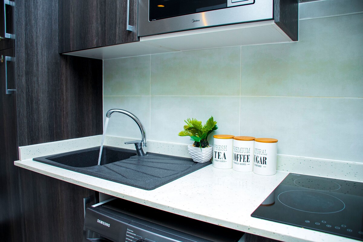 Resort comfort, city convenience, total privacy—welcome to your pool-view hideaway inside Accra’s prestigious Embassy Gardens. WHAT YOU’LL LOVE • Fast Wi-Fi plus complimentary pocket MiFi for the road • Stress-free keyless self-check-in and 24/7 on-site security with backup power • Fully equipped kitchen—oven, stove, microwave, rice cooker, blender, coffee maker & more • 65-inch smart TV with Netflix, workspace, and in-unit washer • Book now or add to your wishlist.