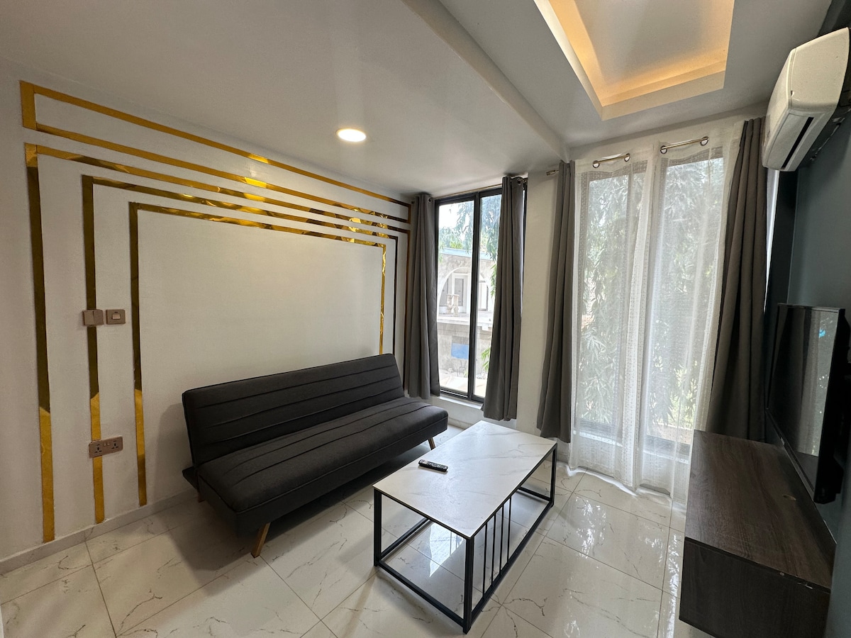 This modern 1-bedroom apartment is cozy and thoughtfully designed — Compact but perfect for solo travelers or couples who want comfort and style in an intimate space. Enjoy: • 🏊 Pool access to relax or stay active • ⚡ 24/7 electricity with backup power • WiFi + Netflix for work or chill nights • 🛏 A comfy bedroom with soft linens for a restful sleep Though the bedroom is cozy, every detail is designed for comfort. You’ll have everything you need for a relaxing stay in Accra.