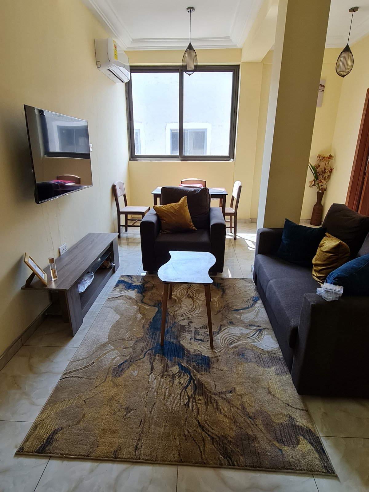 Space: A warm smoke-free studio apartment, beautifully furnished with a clean bathroom. It comes with free high-speed Wi-Fi, Air conditioning, a 55-inch Smart TV and a fully equipped kitchen with a washer. The unit has a balcony with outdoor furniture for your relaxation. The Location: Cozy studio apartment across from Accra mall. Only 10 mins drive from the Int'l airport. The property is very convenient to shops, restaurants, clubs, pub/lounges, Labadi beach and interesting places.