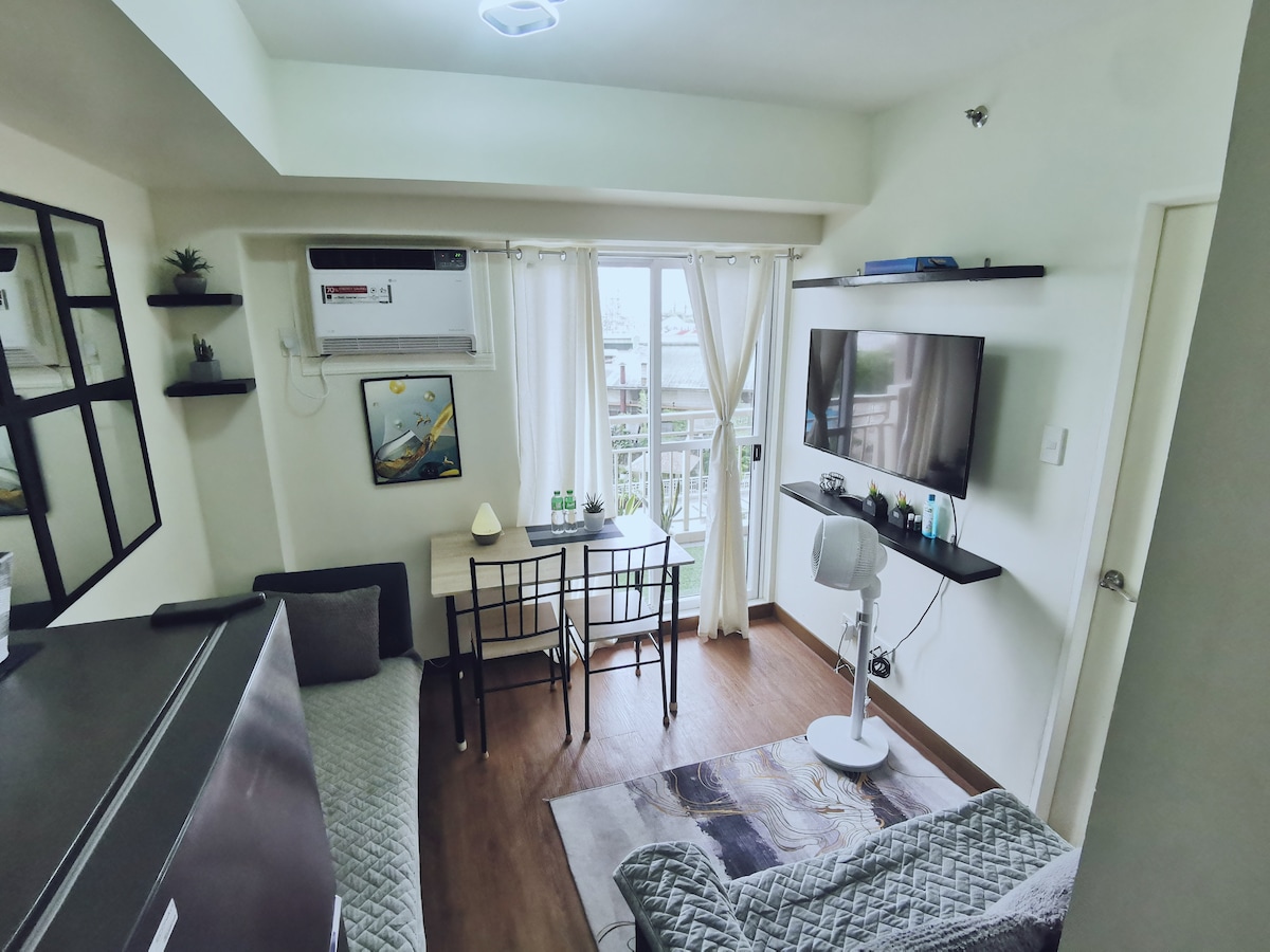 A cozy modern Scandinavian/tropical retreat nestled in the heart of the city. This is a place where you can relax, unwind and have fun with your loved ones or just by yourself. The living area is adorned with light-colored wooden floors, providing a warm and welcoming ambiance. Furnished with simple yet stylish Scandinavian/Tropical furniture. The kitchen is fully functional. Equipped with all your cooking needs. The bedroom’s minimalist design will for sure give you a restful night’s sleep.