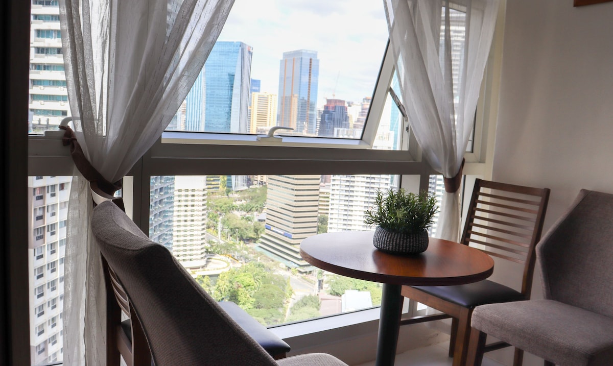 Escape to a high-floor suite with breathtaking BGC skyline views, cinematic JBL surround sound, and a 55-inch Full 4K Smart TV with LED mood lighting—your ultimate movie night haven. Take in the scenery with high-grade binoculars, then sink into the ultra-comfy Emma® Cloud-Bed for a perfect night’s sleep. Far from city noise yet close to everything, enjoy fast WiFi, Netflix, Disney+ and more! Truly a fully equipped space for a seamless, unforgettable staycation experience with Cinema 27!