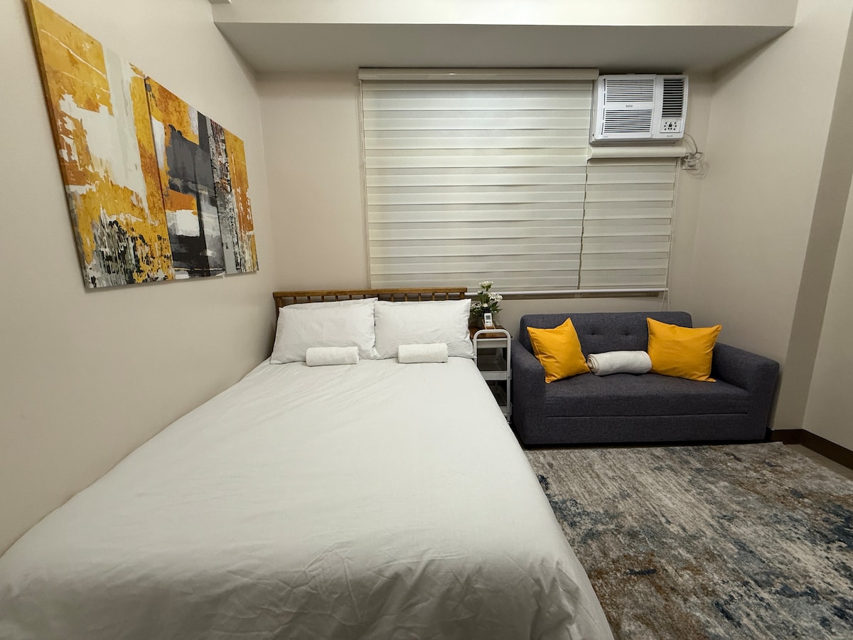 Welcome to your cozy retreat in the heart of Makati. This 26.78sqm Scandanavian-inspired space is thoughtfully prepared for up to 4 guests - perfect for quiet nights, heartfelt conversations, and restful sleep. Enjoy simple comforts like WiFi, Netflix, a homey kichenette, & peaceful surroundings. Explore nearby cafes and shops. More than just a stay - it's a place to feel at home.
